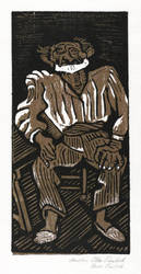 1947. Farbholzschnitt, in Braun & Schwarz, auf rauem hellgelbem Simili-Japan. – Originale Künstlergrafik, von Otto Pankok. – 30,3 x 14,8 cm (Darstellung / Druckstock), 49 x 32 cm (Blatt).