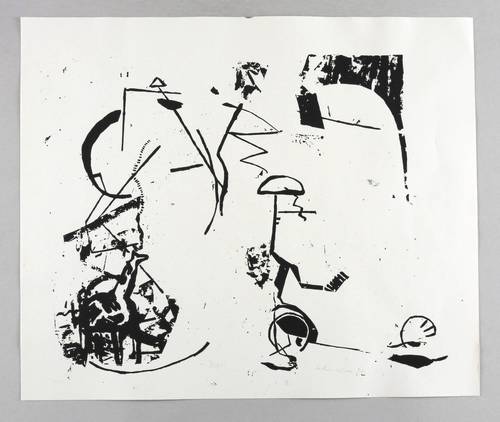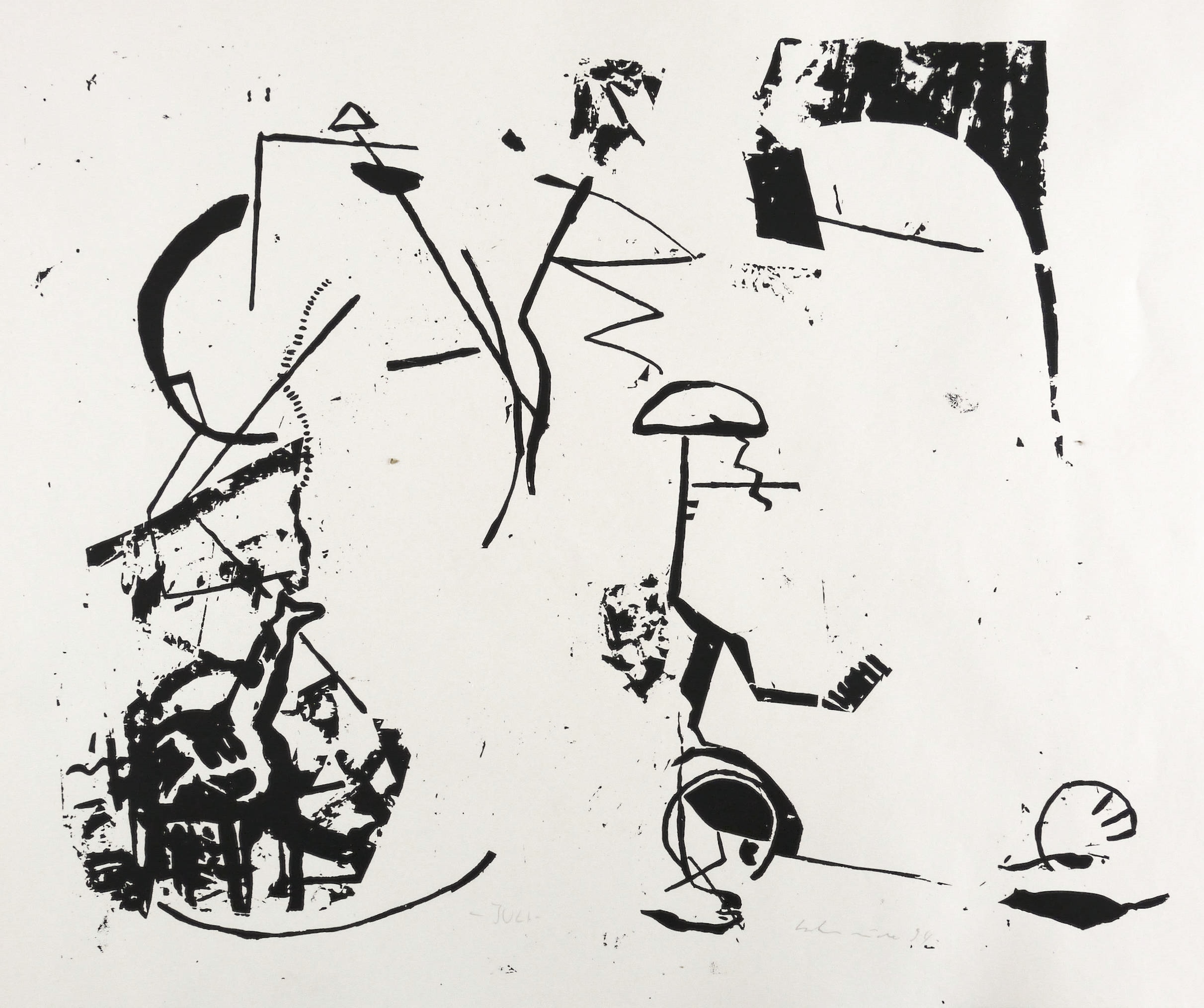 1994. Siebdruck / Serigrafie, in Schwarz, auf hellgelbem Velin. – Originale Künstlergrafik, von Barbara Mäder-Ruff. – Auflage Exemplar Nr. 8/120. – 34,9 x 43,2 cm (Darstellung / Druckbild), 42 x 50 cm (Blatt).