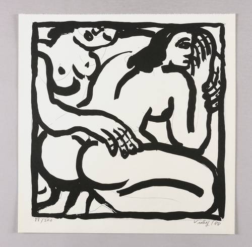 1988. Offsetlithografie / Pinsel- & Federlithografie, in Schwarz, auf hartem hellchamois Velinkarton. – Originale Künstlergrafik, von Eva-Maria Viebeg. – Auflage Exemplar Nr. 88/200. – 32,9 x 32,4 cm (Darstellung / Druckbild), 37 x 36 cm (Blatt).