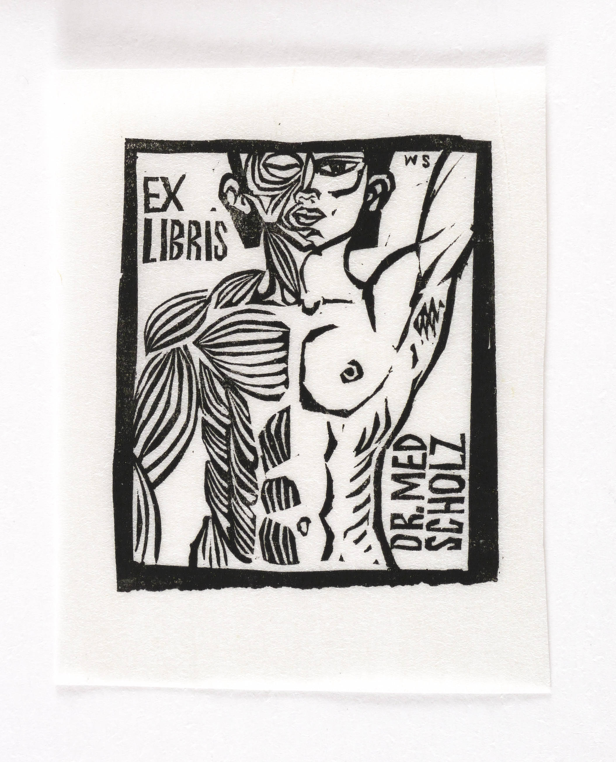 Nicht handsigniert. Im Druckstock rechts oben geschnittenes Monogramm: ″WS″. Dazu Inschrift: ″EX LIBRIS DR. MED SCHOLZ″. – Sehr guter Zustand.