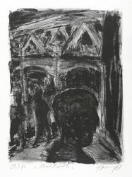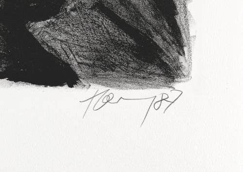 1987. Lithografie / Kreide- & Pinsellithografie, in Schwarz, auf hellchamois Hahnemühle. – Originale Künstlergrafik, von Hartmut Hornung. – Auflage Exemplar Nr. 68/74. – 42,6 x 31,7 cm (Darstellung / Druckbild), 54 x 40 cm (Blatt).