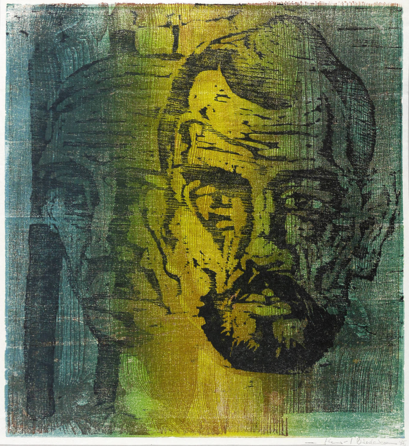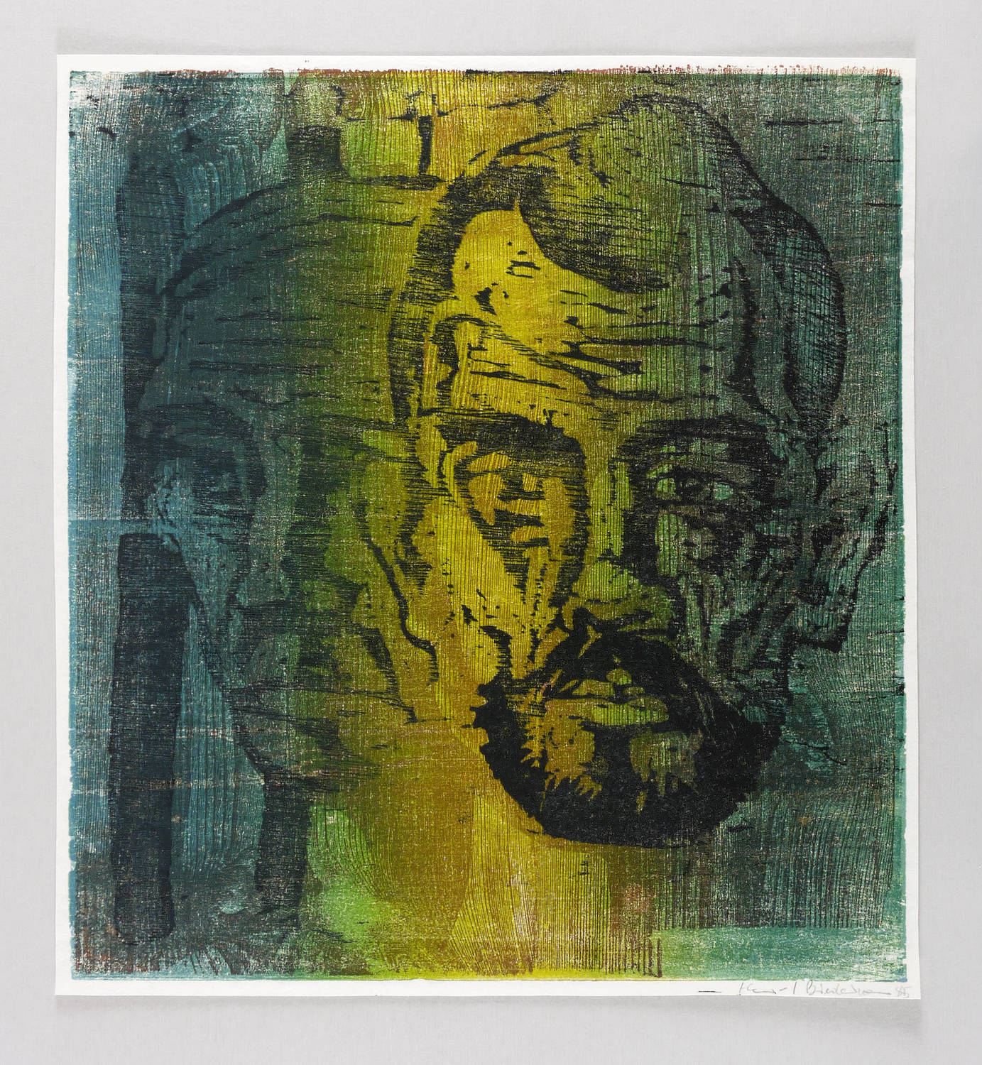 1985. Farbholzschnitt, in 6 Farben, auf hellchamois Velin. – Originale Künstlergrafik, von Hans Joachim Biedermann. – 45,0 x 35,3 cm (Darstellung / Blatt), 52 x 40 cm (Blatt).