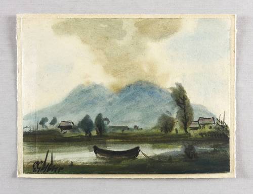 Um 1940. Aquarell, auf hellgelbem Velinkarton. – Originale Künstlergrafik, von Georg Gelbke. – Unikat. – 10,9 x 15,8 cm (Darstellung / Blatt), 12,6 x 16,6 cm (Trägerkarton).