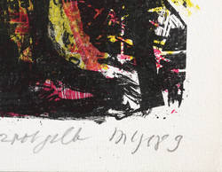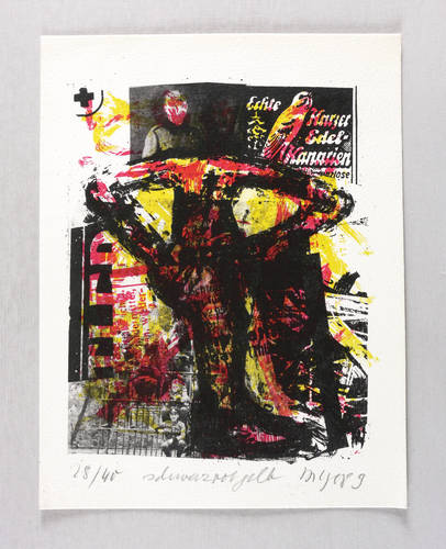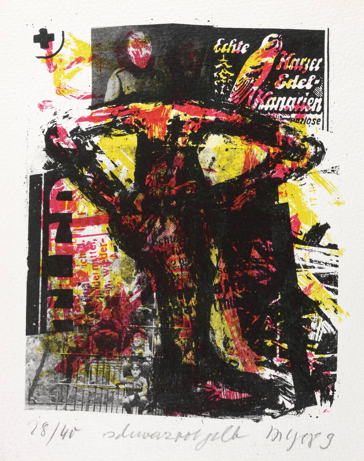 1989. Kombinationsdruck / Farbsiebdruck & Offset, in 3 Farben, auf hellchamois Weißenborn. – Originale Künstlergrafik, von Frank Voigt. – Auflage Exemplar Nr. 28/40. – 20,4 x 15,8 cm (Darstellung / Druckbild), 25 x 20 cm (Blatt).