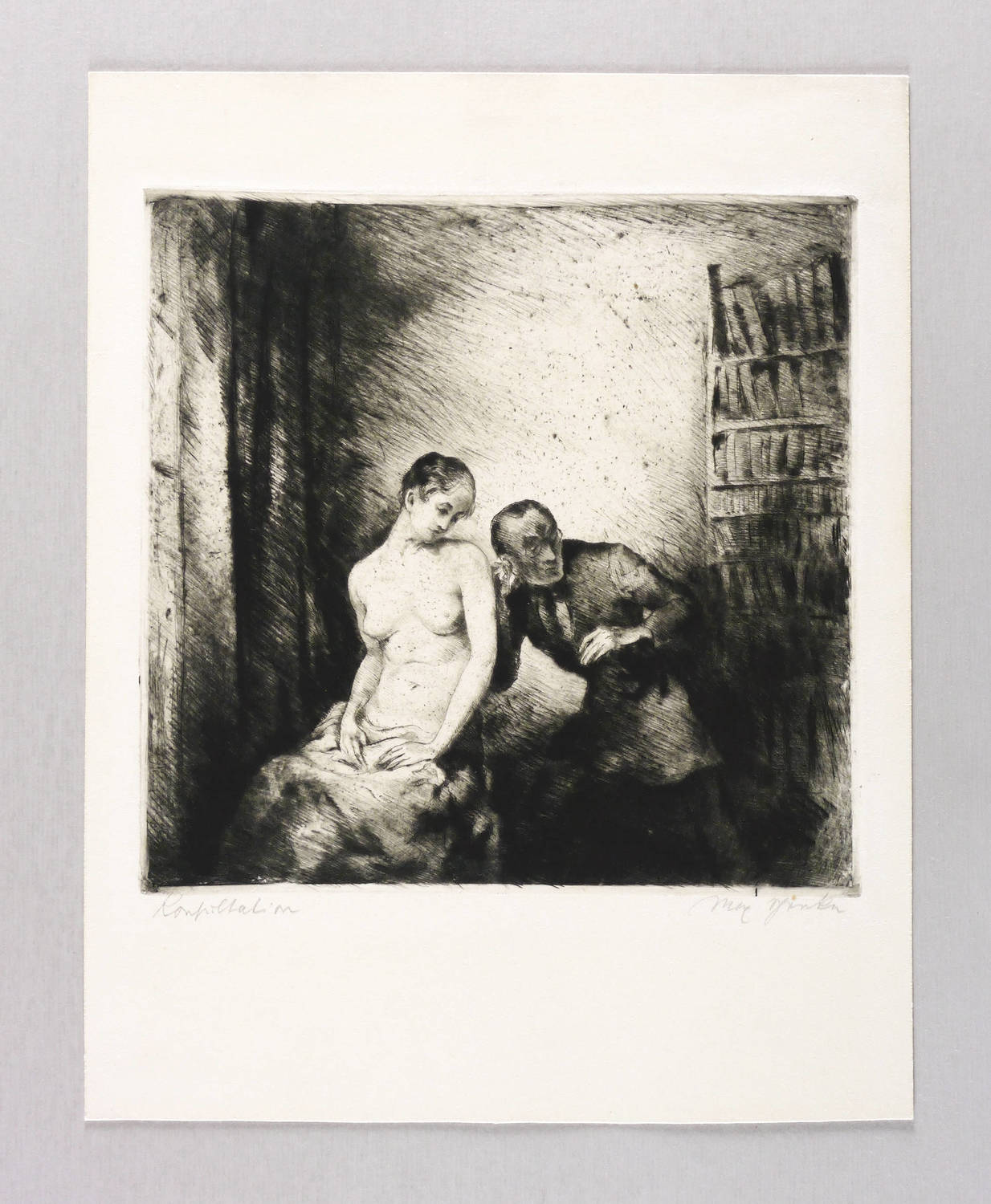 Rechts unten in Bleistift signiert: ″Max Schenke″. Links Titel: ″Konsultation″. – Sehr guter Zustand.