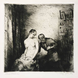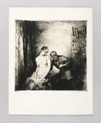 Um 1920. Radierung / Kaltnadel, in Schwarz, auf hellgelbem Velin. – Originale Künstlergrafik, von Max Schenke. – 24,6 x 25,1 cm (Darstellung / Platte), 37 x 29 cm (Blatt).