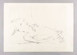 1980. Lithografie / Kreidelithografie, in Schwarz, auf hellgelbem Maschinenbütten. – Originale Künstlergrafik, von Simone Wecks. – Auflage Exemplar Nr. 3/10. – 30,8 x 45,9 cm (Darstellung / Druckbild), 42 x 60 cm (Blatt).