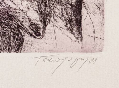 Aus: Grafikkalender 1989 (Berlin: Staatlicher Kunsthandel der DDR 1988). – Rechts unten in Bleistift signiert und datiert: ″Zaprasis 88″. Links Auflagenbezeichnung: ″88/200″. Blindprägung Grafik Edition. – Tadelloses Exemplar. Sehr guter Zustand.