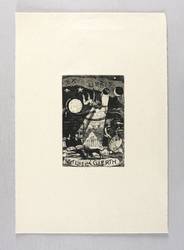 1938. Radierung / Strichätzung & Aquatinta, in Schwarz, auf grobfasrigem gelbem Bütten. – Exlibris, von Bernhard Kretzschmar. – 13,2 x 8,9 cm (Darstellung / Platte), 32 x 22 cm (Blatt).