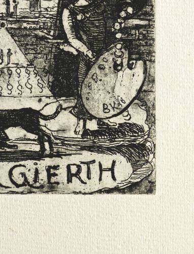 Schmidt R 187. – Nicht handsigniert. In der Platte rechts unten in der Palette signiert und datiert: ″BK 38″. Dazu Inschrift: ″EX LIBRIS WILHELM GIERTH″. – Tadellos. Sehr guter Zustand.