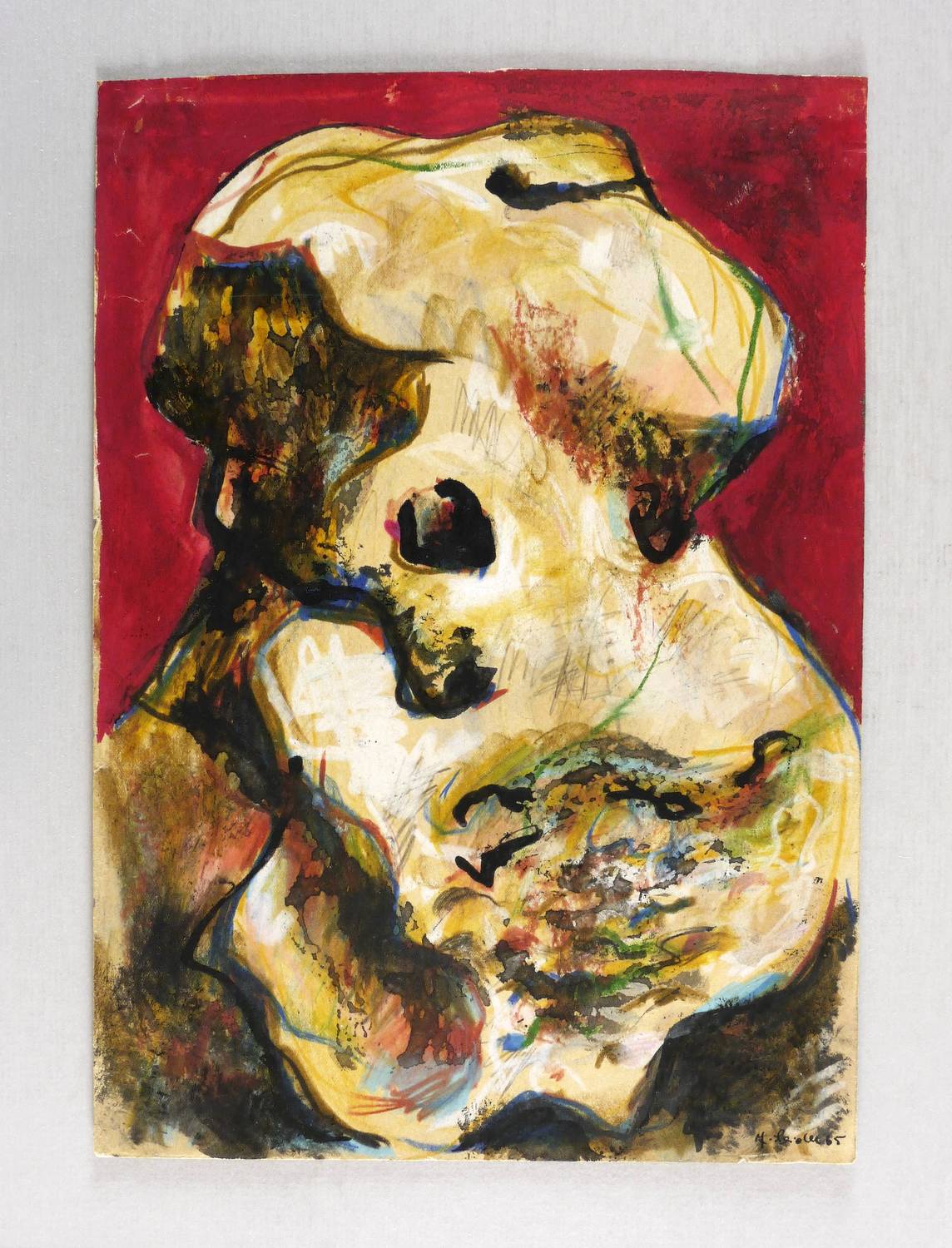 1965. Mischtechnik / Graphit, Farbkreide, Tempera & Tusche, auf glattem hellgelbem Papier. – Originale Künstlergrafik, von Jürgen Seidel. – Unikat. – 29,7 x 21,0 cm (Darstellung / Blatt).