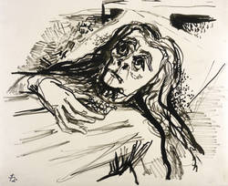 Links unten signiert mit Monogramm: ″JH″. – Krankenporträt von Paula Jüchser (1892- 1955), geb. Schmidt, der ersten Ehefrau des Dresdner Malers Hans Jüchser. - Provenienz: Sammlung Dr. Ingrid und Prof. Dr. Albrecht Scholz, Dresden. – Sehr guter Zustand.