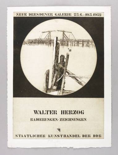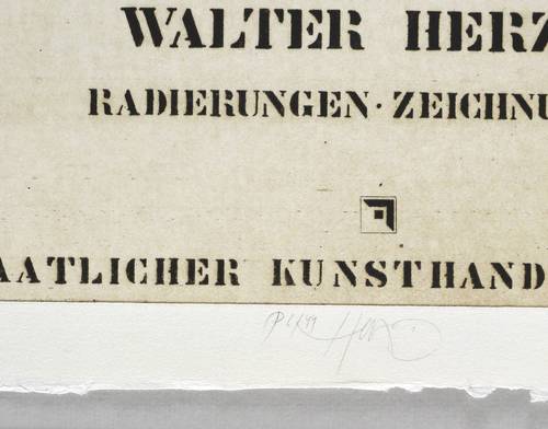 Unterhalb in Bleistift signiert: ″Herzog″. Dazu Auflagenbezeichnung. In der Platte oben und unten Plakattext. Wasserzeichen der Hahnemühle. – Originalgrafisches Plakat zur Ausstellung ″W.H. Radierungen Zeichnungen″ in der Neuen Dresdener Galerie 28.6.-10.8.1982. - Provenienz: Sammlung Dr. Ingrid und Prof. Dr. Albrecht Scholz, Dresden. – Unbeschnittenes Exemplar. Ohne Mängel. Sehr guter Zustand.