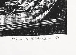 1986. Holzschnitt, in Schwarz, auf hellchamois Velinkarton. – Originale Künstlergrafik, von Hans Joachim Biedermann. – Auflage Exemplar Nr. 6/180. – 45,0 x 35,3 cm (Darstellung / Blatt), 52 x 40 cm (Blatt).