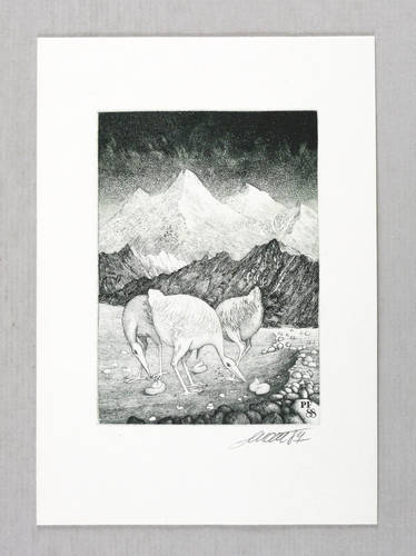 Josef Dudek (*1954 Šumperk, lebt und arbeitet in Prag). Tschechischer Grafiker und Exlibris-Künstler. 1972-77 Studium an der Fakultät für Pädagogik der Palacký-Universität in Olomouc (Olmütz). Schüler von Dušan Janouše. Zunächst in Olomouc, später in Prag als Kunstpädagoge tätig. Daneben Grafik und Buchillustration. 1997 Bekanntschaft mit Václav Křupka, der ihn zum Exlibrisschaffen anregte.