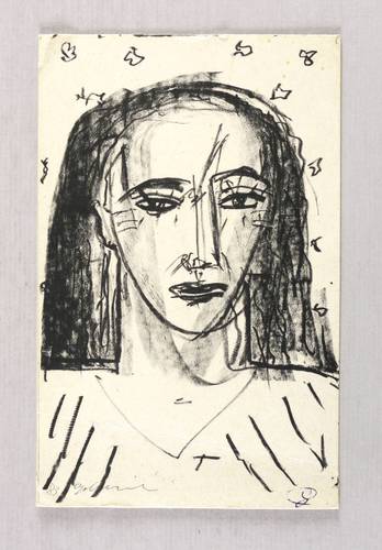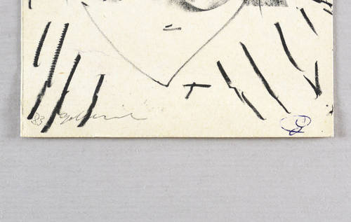 Scharnhorst 478. – Rechts unten in blauem Kugelschreiber signiert. Im Stein links unten Jahr und Signatur. Verso Kartengruß von Helga und Dieter Goltzsche an Dr. Albrecht Scholz in Dresden. Frankiert und mit Poststempel vom 27.06.1987. – Blattecken bestoßen, unten horizontale Knickspur. Mangelhafter bis mäßig guter Zustand.