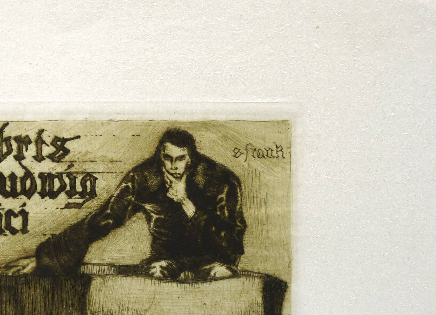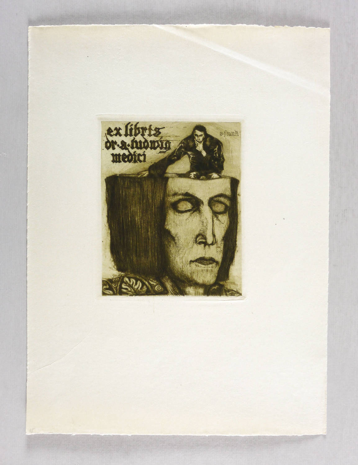 Sparke 119. – Nicht handsigniert. In der Platte rechts oben signiert: ″s frank″. Rechts oben Inschrift: ″ex libris dr a ludwig medici″. – Druck bei Franz Hanfstaengl in München. – Im oberen Rand leichte Knickspur. Mäßig gut erhalten.