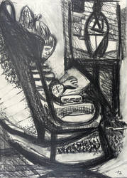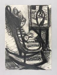 Um 1965. Zeichnung / Graphitzeichnung, partiell gewischt & geschabt, auf hellchamois Velin. – Originale Künstlergrafik, von Joachim Heuer. – 37,4 x 26,9 cm (Darstellung / Blatt).