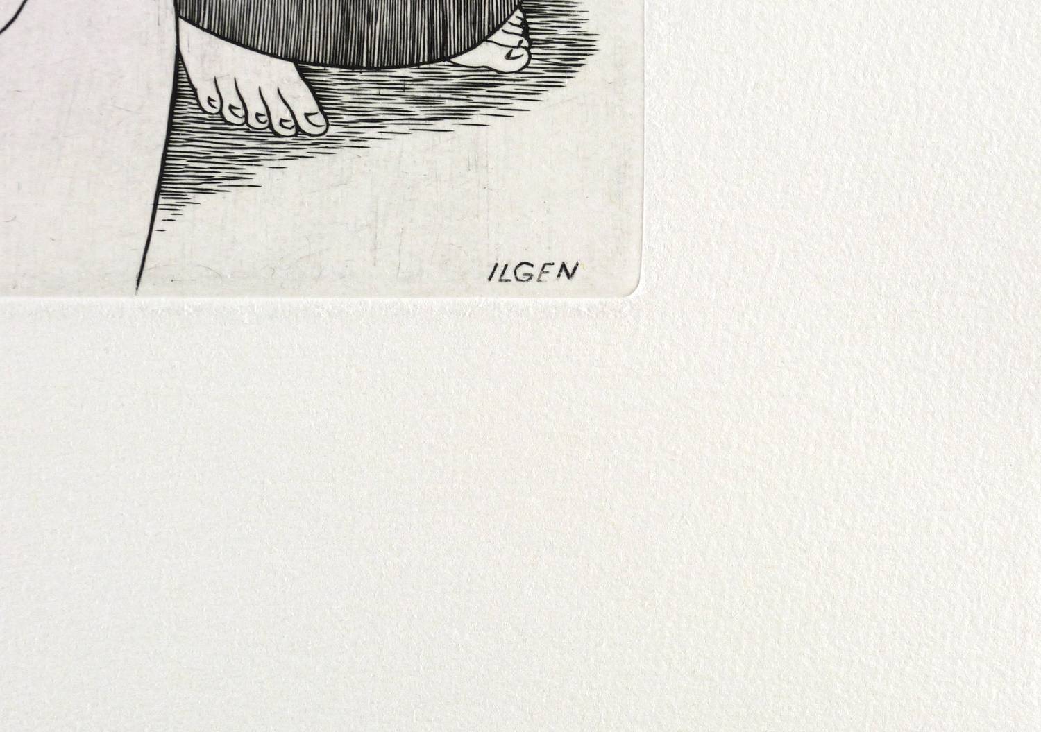 Nicht handsigniert. In der Platte rechts unten signiert: ″ILGEN″. Verso Nachlass-Stempel mit Auflagenbezeichnung in Bleistift. Wasserzeichen der Hahnemühle. Blindstempel der Druckpresse mit Vogel, Monogramm ″MK″ und Schriftzug ″IMPRIMARE″. – Posthumer Abzug von der originalen Platte. – Sehr guter Zustand.