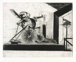 1924/1989. Radierung / Kaltnadel, in Schwarz, mit Plattenton, auf hellchamois Bütten. – Originale Künstlergrafik, von Wilhelm Höpfner. – Auflage Exemplar Nr. 4/40. – 16,5 x 21,0 cm (Darstellung / Platte), 40 x 54 cm (Blatt).