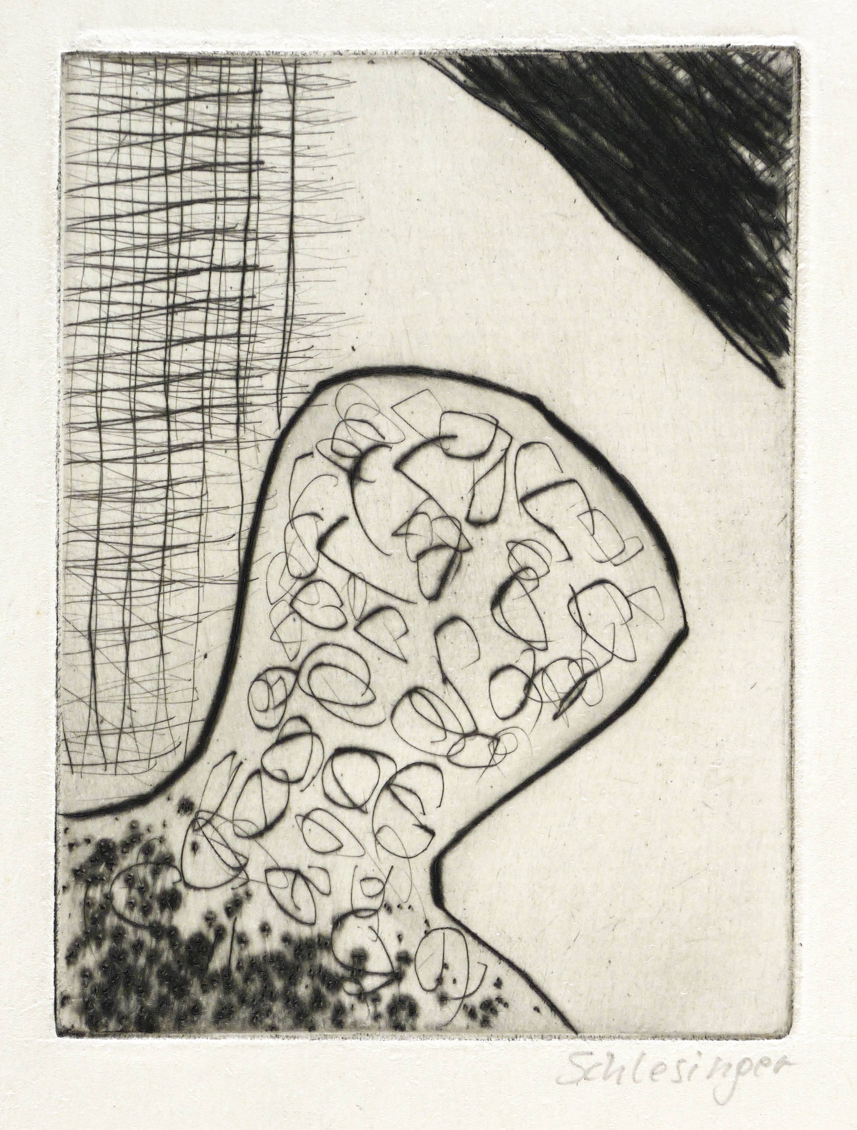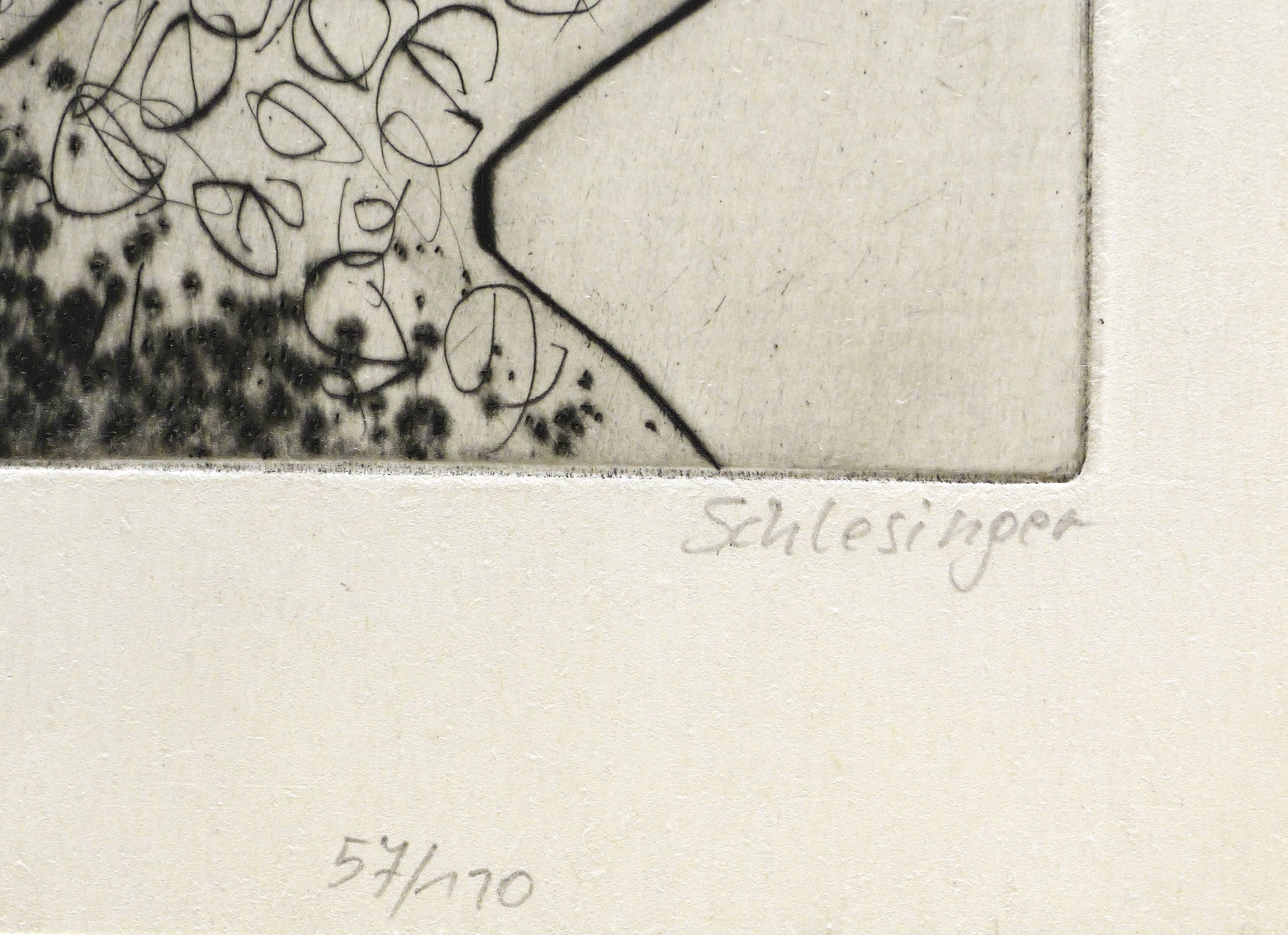 Um 1980. Radierung / Kaltnadel, in Schwarz, auf hellem Velin. – Originale Künstlergrafik, von Gil Schlesinger. – Auflage Exemplar Nr. 57/110. – 10,7 x 7,9 cm (Darstellung / Druckbild), 16 x 11 cm (Blatt).
