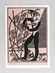 1994. Linolschnitt, in Schwarz, auf hellrotem Maschinenpapier. – Originale Künstlergrafik, von Roland R. Berger. – 18,1 x 13,0 cm (Darstellung / Druckbild), 20 x 14 cm (Blatt).