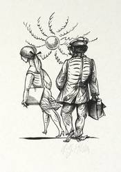 Karl-Georg Hirsch (*1938 Breslau, lebt und arbeitet bei Leipzig). Deutscher Grafiker. Lehre und Tätigkeit als Stuckateur. 1960-65 Studium an der Hochschule für Grafik und Buchkunst Leipzig (HGB). Ab 1965 freischaffend. 1967–70 Assistent an der HGB, seit 1970 Leiter der Werkstatt Holzschnitt, seit 1976 Dozent ebenda. 1981/82 Gastdozent für Holzschnitt und Holzstich an der finnischen Universität Jyväskylä. 1989 Berufung zum Professor für Grafik und Illustration an der HGB. 1990-97 Prorektor. Bekannt für seinen miniaturhaften, meisterhaft virtuosen Holzschnitt, den man in der DDR ob seiner extremen Schärfe und Kleinteiligkeit unrichtig als Holzstich bezeichnete.