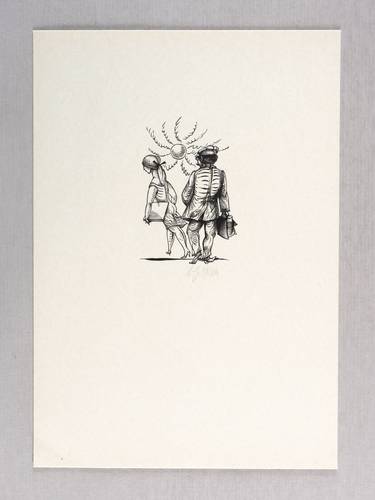 1970. Holzstich, in Schwarz, auf glattem weißem Karton. – Originale Künstlergrafik, von Karl-Georg Hirsch. – 7,1 x 4,6 cm (Darstellung / Druckstock), 21 x 15 cm (Blatt).