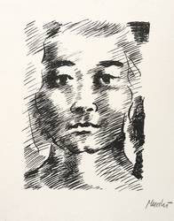 1987. Lithografie / Pinsellithografie, in Schwarz, auf hartem hellchamois Maschinenpapier. – Originale Künstlergrafik, von Gabriele Mucchi. – 17,0 x 12,6 cm (Darstellung / Druckbild), 25 x 19 cm (Blatt).