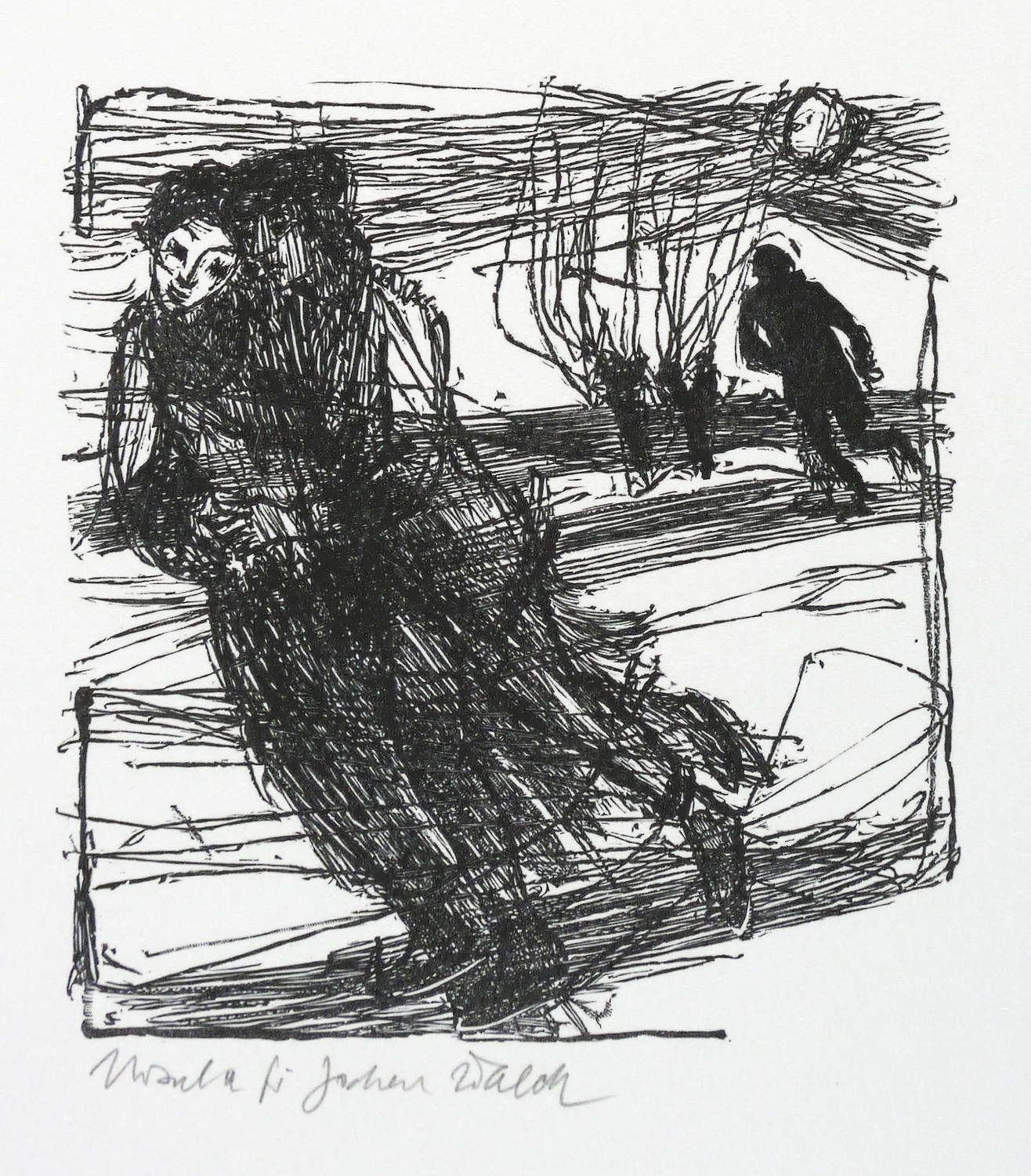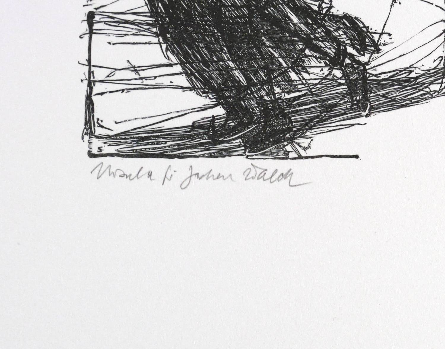 Aus: Blätter zu Literatur und Graphik. Für Jochen. Ein Dank an Hans-Joachim Walch (Leipzig: Leipziger Bibliophilen-Abend 1992), Bd. 18. – Unterhalb in Bleistift von der Witwe Ursula Walch signiert. – Posthumer Abdruck vom originalen Druckstock für die Blätter zu Literatur und Graphik des Leipziger Bibliophilen-Abends 1992. – Sehr guter Zustand.