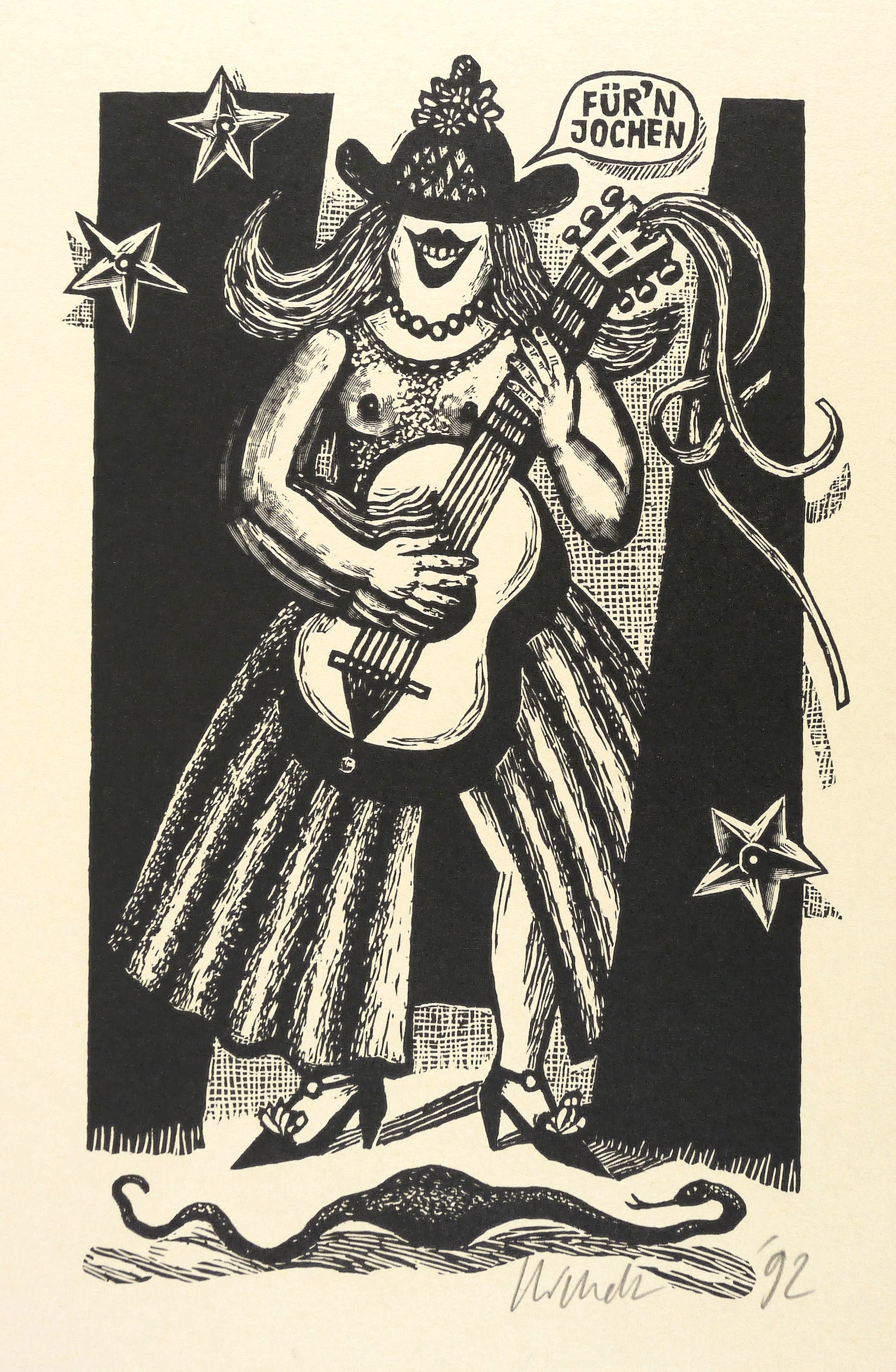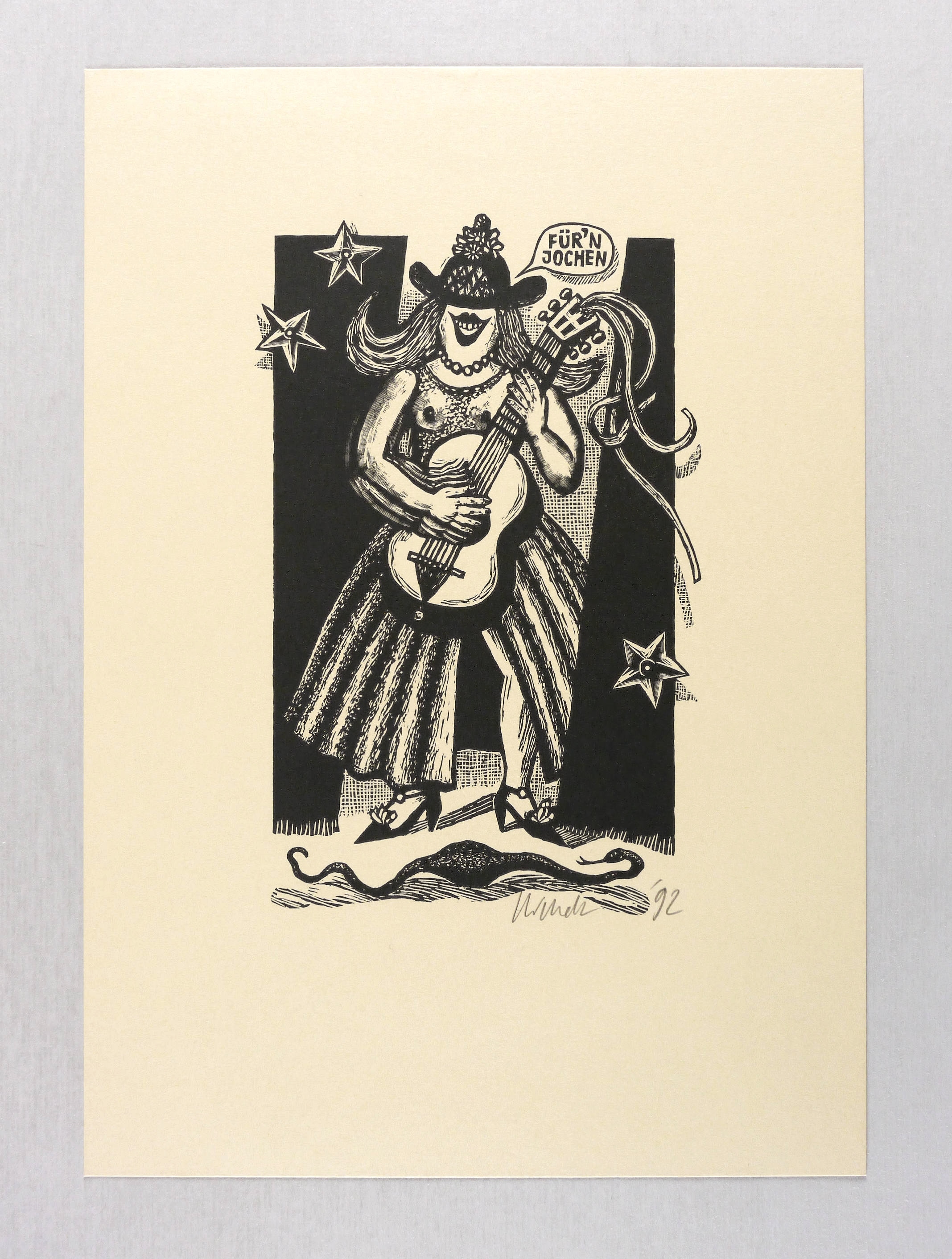 Aus: Blätter zu Literatur und Graphik. Für Jochen. Ein Dank an Hans-Joachim Walch (Leipzig: Leipziger Bibliophilen-Abend 1992), Bd. 18. – Rechts unten in Bleistift signiert und datiert: ″V. Wendt 92″. – Sehr guter Zustand.