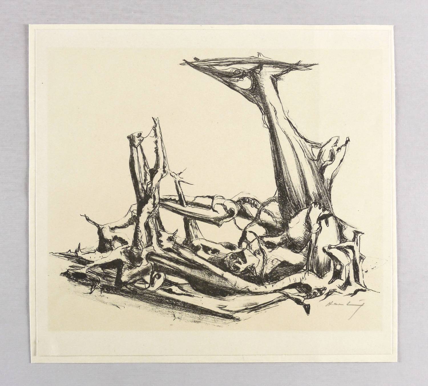 1946. Lithografie / Kreidelithografie, in Schwarz, auf hellgelbem Velin. – Originale Künstlergrafik, von Karl Hartung. – 24,0 x 29,8 cm (Darstellung / Druckbild), 29 x 31 cm (Blatt).