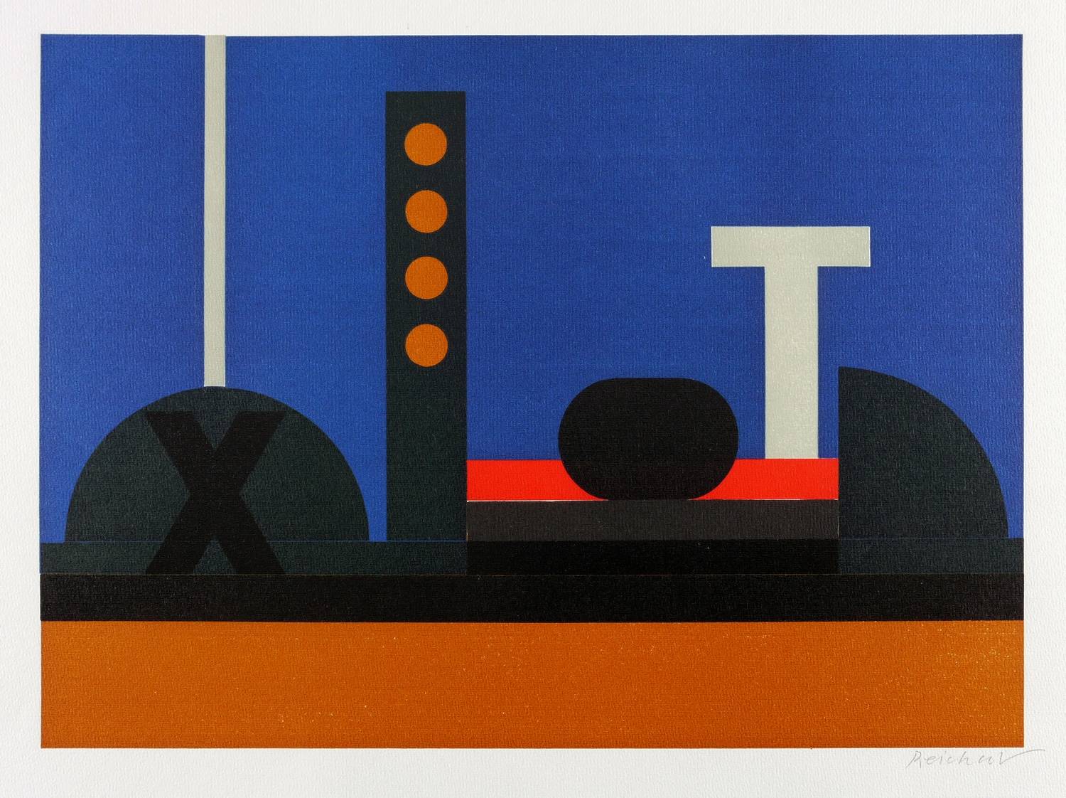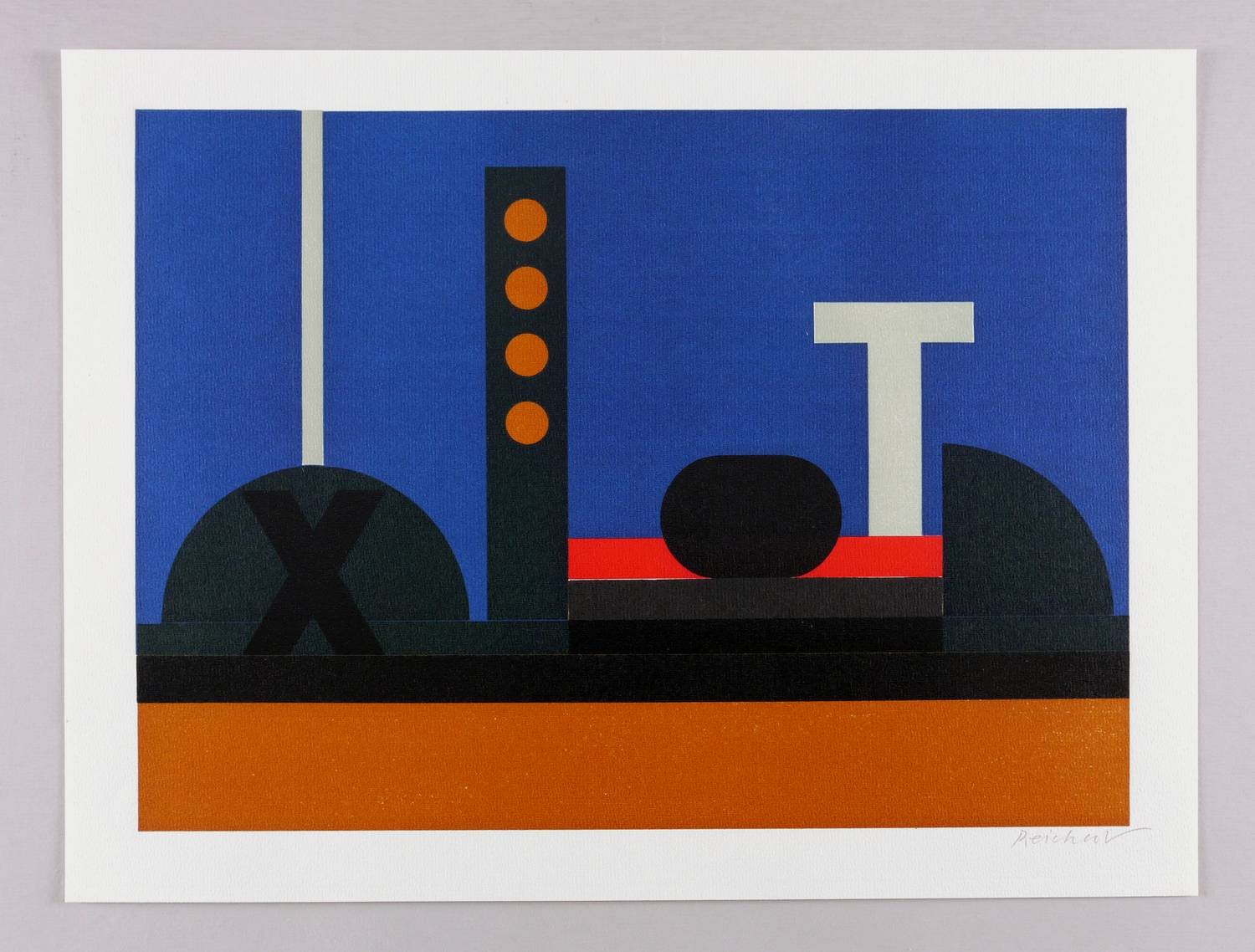 1982. Farbsiebdruck / Farbserigrafie, in 5 Farben, auf hellchamois Maschinenbütten. – Originale Künstlergrafik, von Josua Reichert. – Auflage 225 Exemplare. – 30,5 x 42,0 cm (Darstellung), 36 x 48 cm (Blatt).