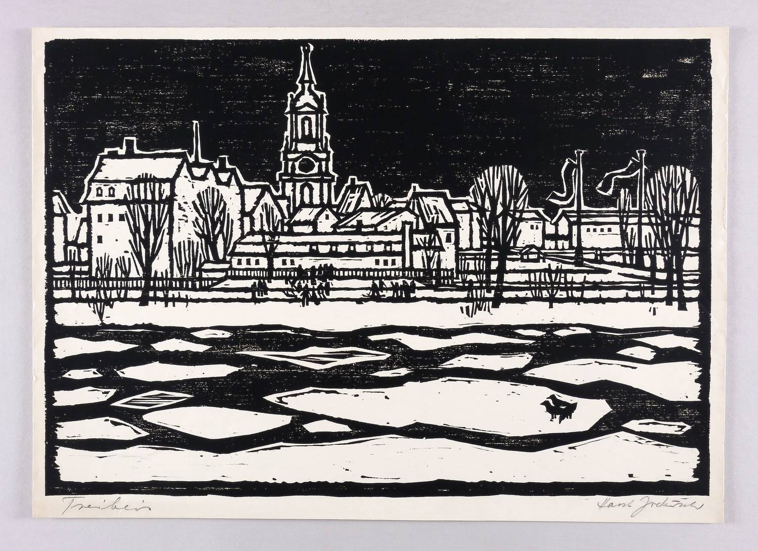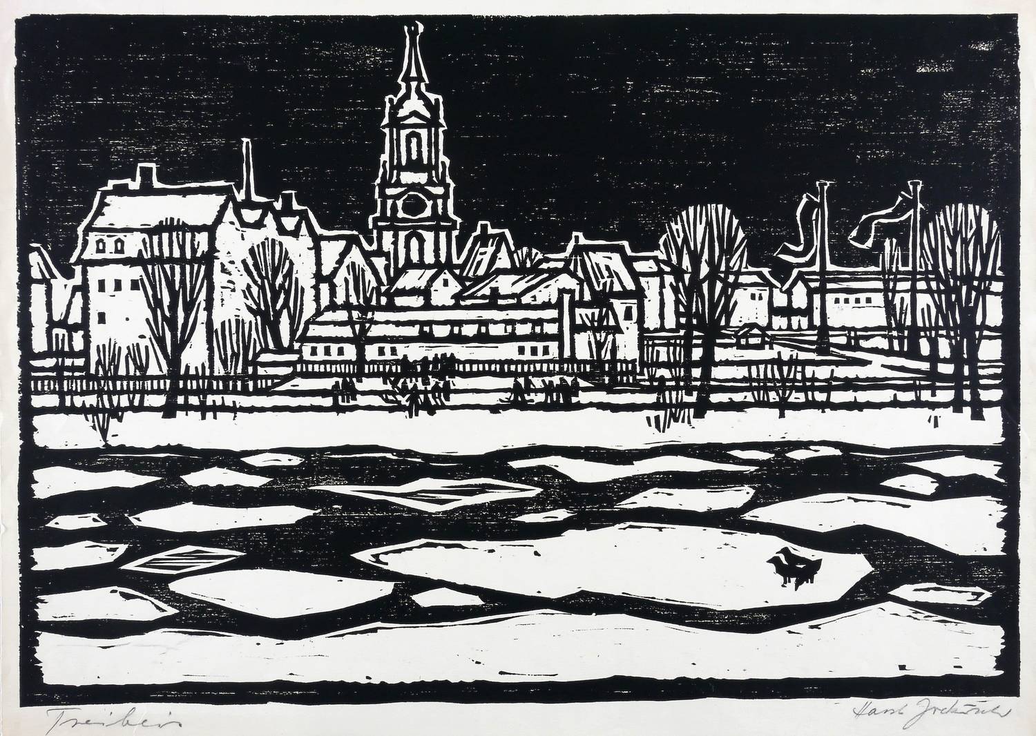 In Bleistift rechts unten signiert: ″Horst Jockusch″. Links Titel: ″Treibeis″. – Der Bau des Hotels Bellevue (1983-85) bezog das Barockhaus in die Gesamtarchitektur mit ein. – Leichte Randmängel. Guter Zustand.