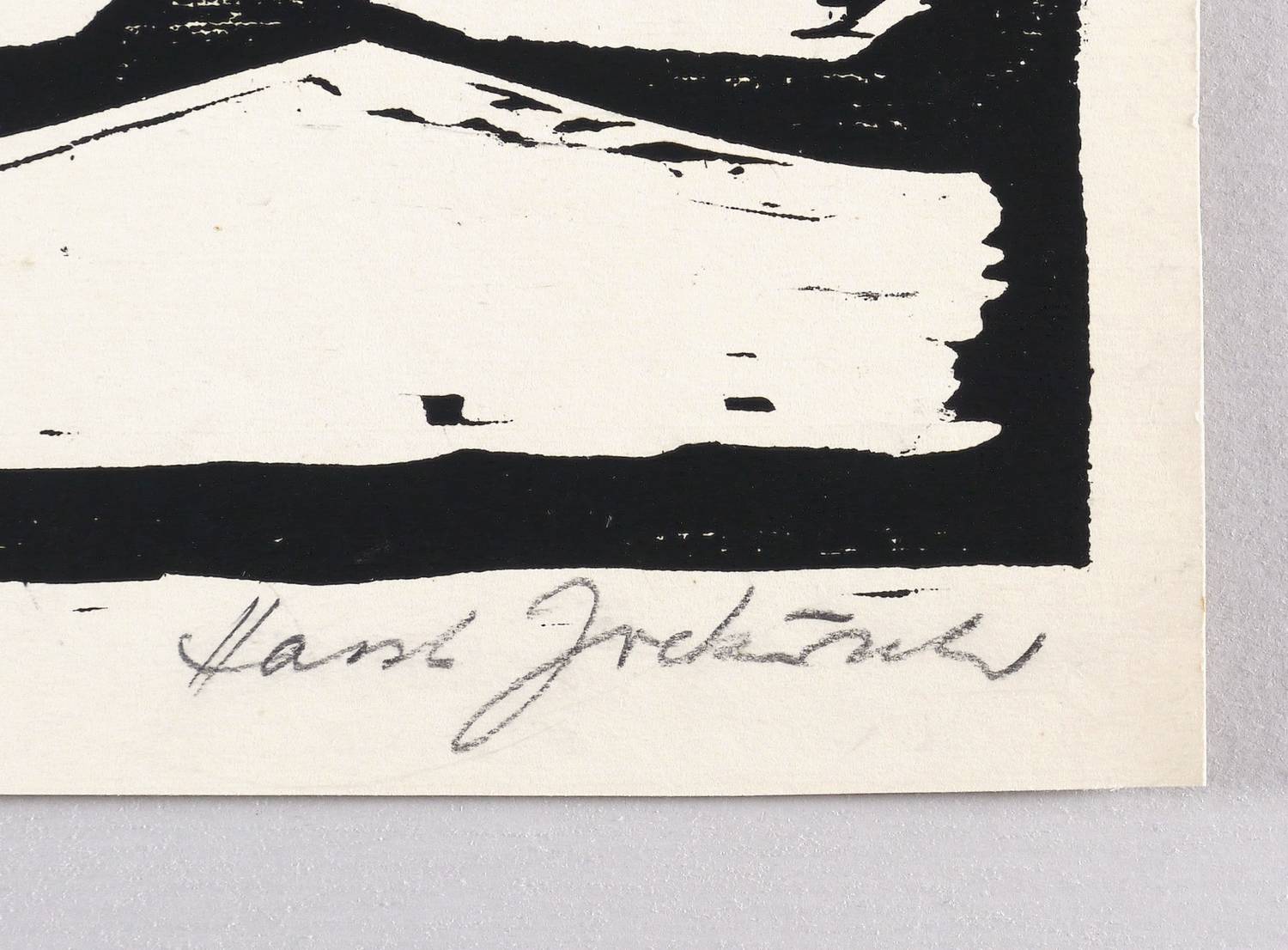 Um 1960. Holzschnitt, in Schwarz, auf gelblichem Velinkarton. – Originale Künstlergrafik, von Horst Jockusch. – 33,7 x 49,0 cm (Darstellung / Druckbild), 37 x 51 cm (Blatt).