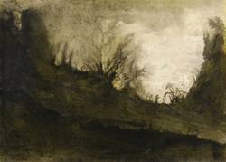 1984. Zeichnung / Pinselzeichnung, in schwarzer Tusche, auf starkem hellem Velinkarton. – Originale Künstlergrafik, von Elly Schreiter. – Unikat. – 16,7 x 23,0 cm (Darstellung / Blatt).