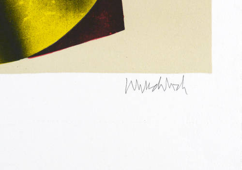 1973. Farblithografie / Kreide- & Pinsellithografie, in Rot, Gelb, Ocker & Schwarz, auf rauem hellchamois BFK Rives. – Originale Künstlergrafik, von Paul Wunderlich. – Künstlerexemplar (e.a.). – 50,3 x 45,3 cm (Darstellung / Druckbild), 66 x 50 cm (Blatt).