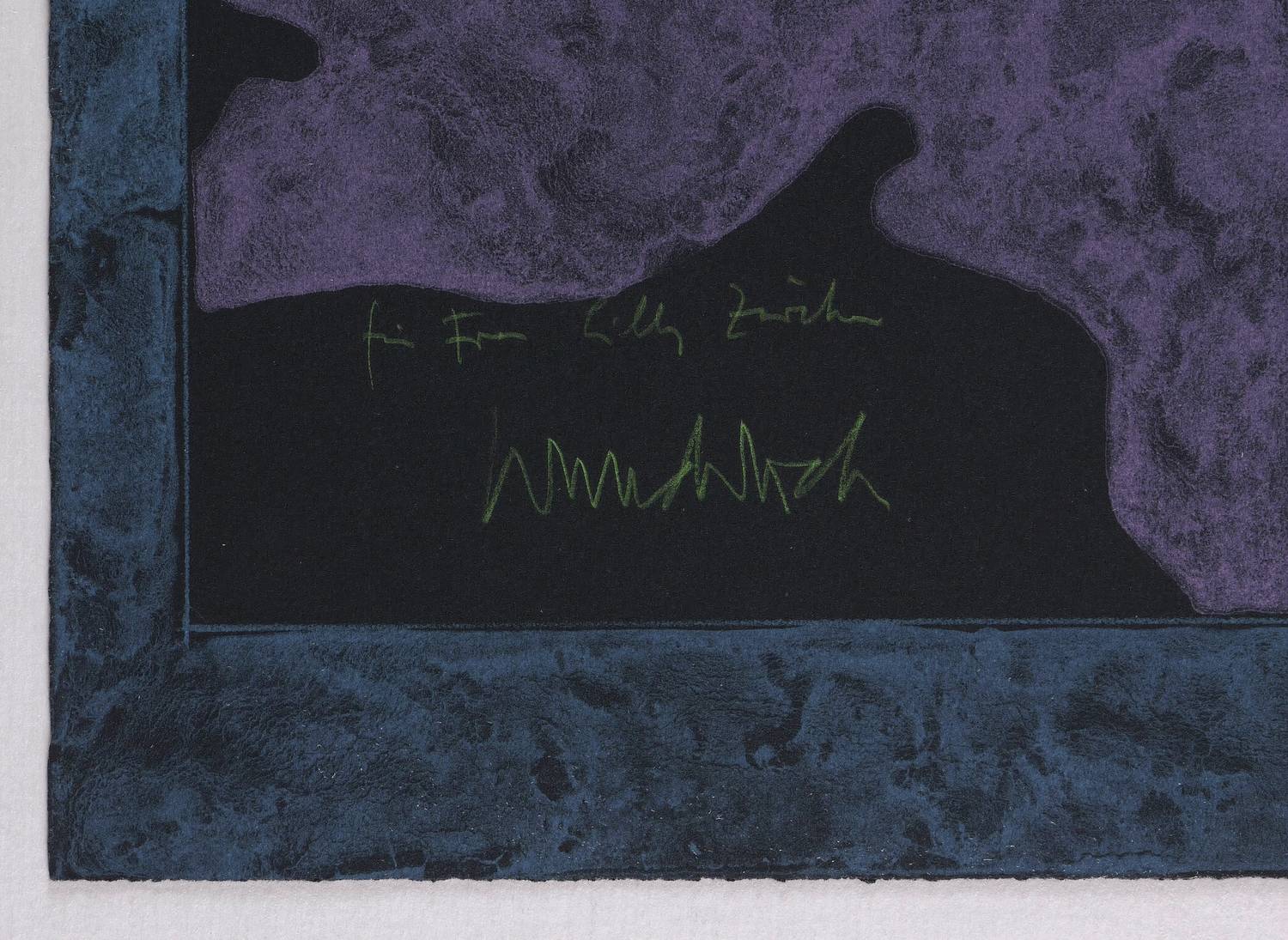 Riediger 393. – Links unten in Bleistift signiert: ″Wunderlich″. Rechts Auflagenbezeichnung: ″e.a.″ Widmung. – Druck von Matthieu in Dielsdorf, Schweiz. – Belegexemplar des Künstlers zu einer Auflage von 200 Exemplaren. – Randloser Druck. – Sehr guter Zustand.