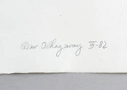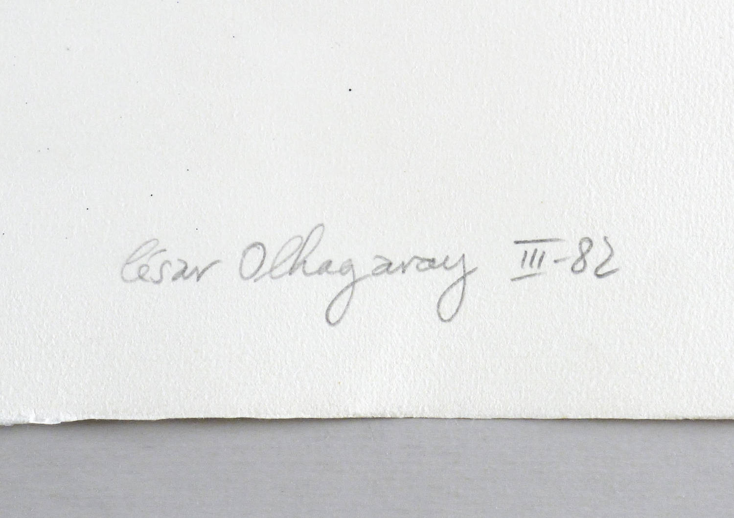 Rechts unten in Bleistift signiert und datiert: ″César Olhagaray III-82″. Links Auflagenbezeichnung: ″1/6″. Dazu Widmung an den Steindrucker Michael Wackwitz. – Tadellos erhalten. Sehr guter Zustand.
