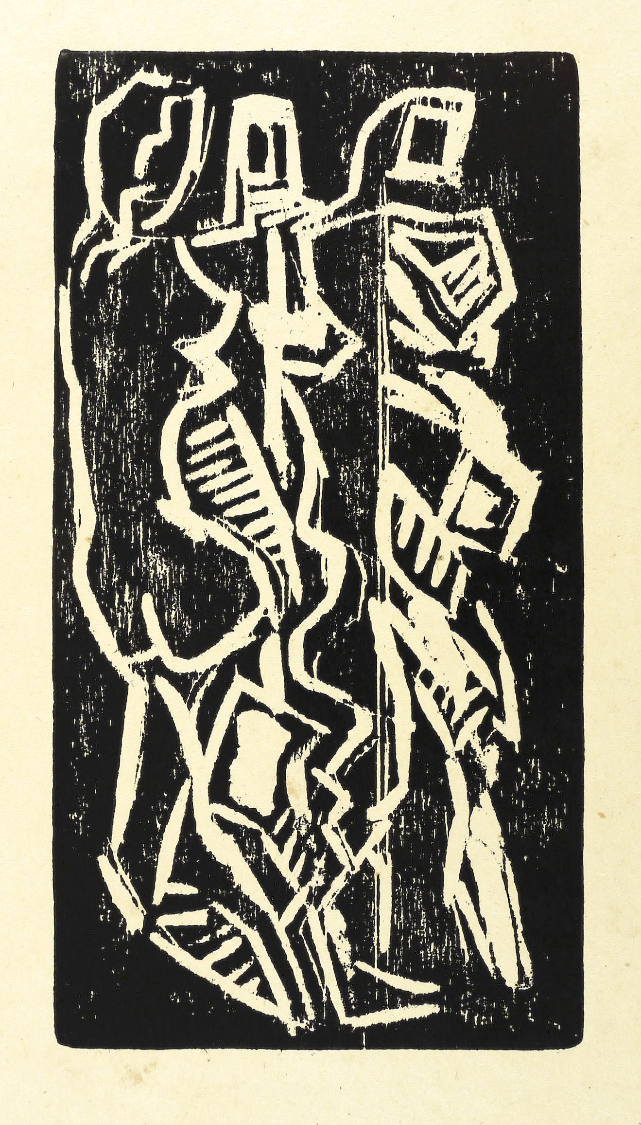 1980-1990. Holzschnitt, in Schwarz, auf gelbem Velin. – Originale Künstlergrafik, von Horst Weber. – 20,9 x 11,0 cm (Darstellung / Druckstock), 30 x 21 cm (Blatt).