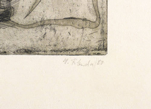 1980. Radierung / Strichätzung & Aquatinta, in Schwarz, auf chamois Velinkarton. – Originale Künstlergrafik, von Walter Libuda. – Probedruck. – 27,3 x 23,1 cm (Darstellung / Platte), 43 x 35 cm (Blatt).