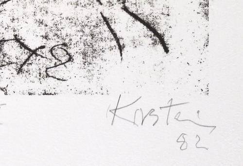 Rechts unten in Bleistift signiert und datiert: ″Kirstein 82″. Links Auflagenbezeichnung: ″I/IV″. – Lithografie, die im Zusammenhang der Mappe ″Mädchen″ entstand und als Exemplar einer sehr kleinen Auflage von nur 4 Blättern gedruckt wurde. – Sehr guter Zustand.