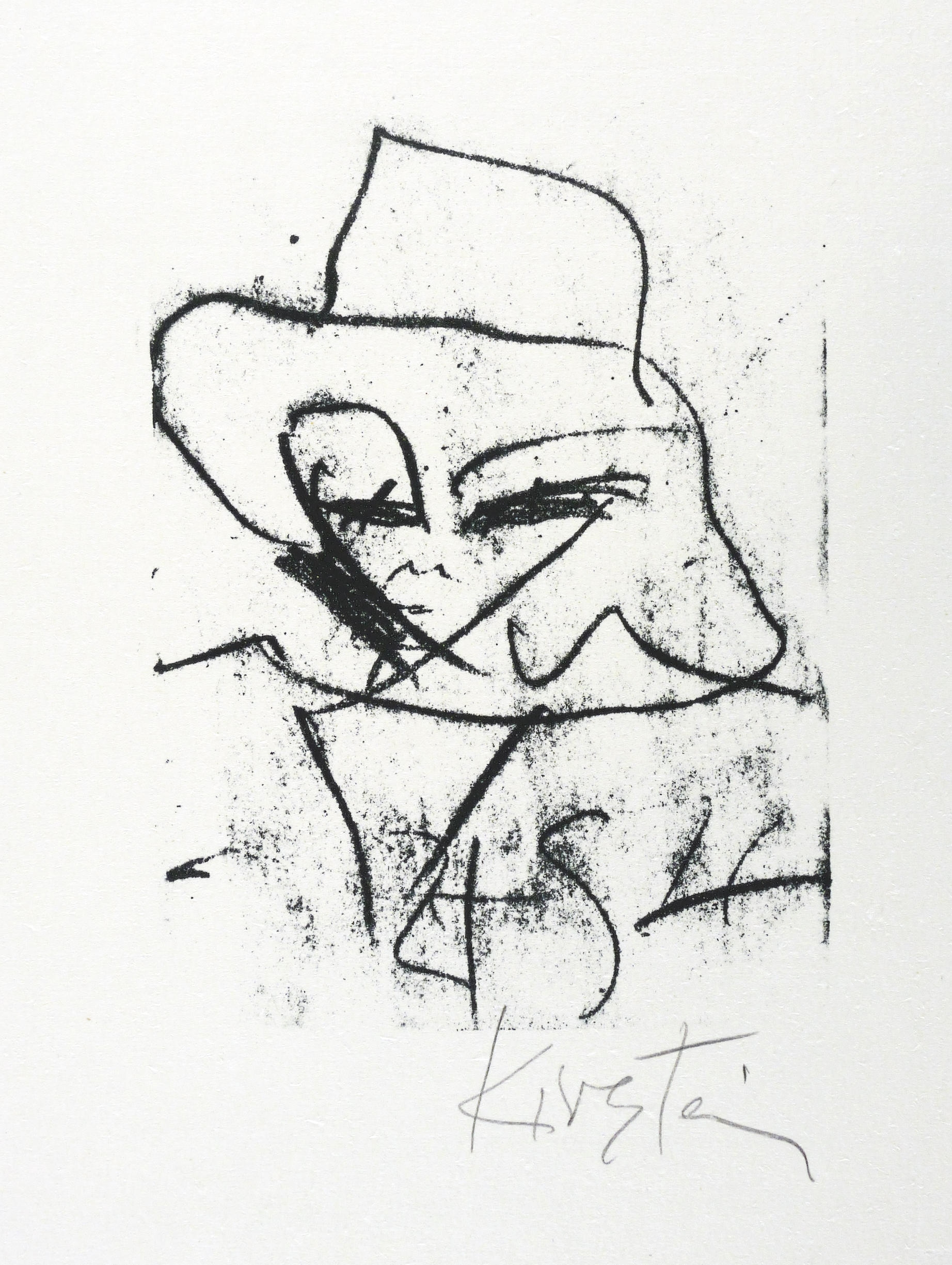 1982. Lithografie / Kreidelithografie, in Schwarz, auf hellchamois Bütten. – Originale Künstlergrafik, von Helmut Schmidt-Kirstein. – 25 x 19 cm (Blatt), 13,8 x 10,2 cm (Darstellung / Druckbild).