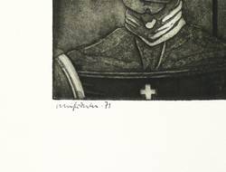 1971. Radierung / Aquatinta, in Schwarz, auf festem hellchamois Velinkarton. – Originale Künstlergrafik, von Jürgen Schieferdecker. – 31 x 21 cm (Blatt), 17,8 x 13,5 cm (Darstellung / Druckbild).