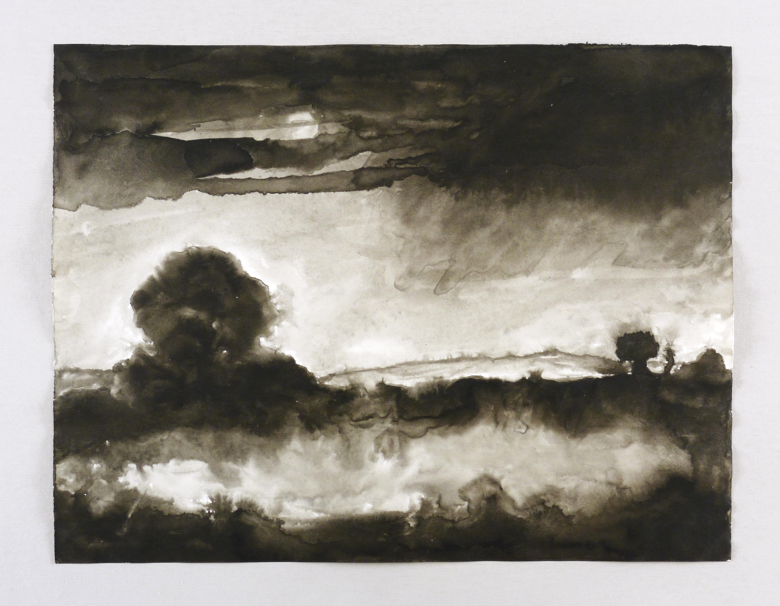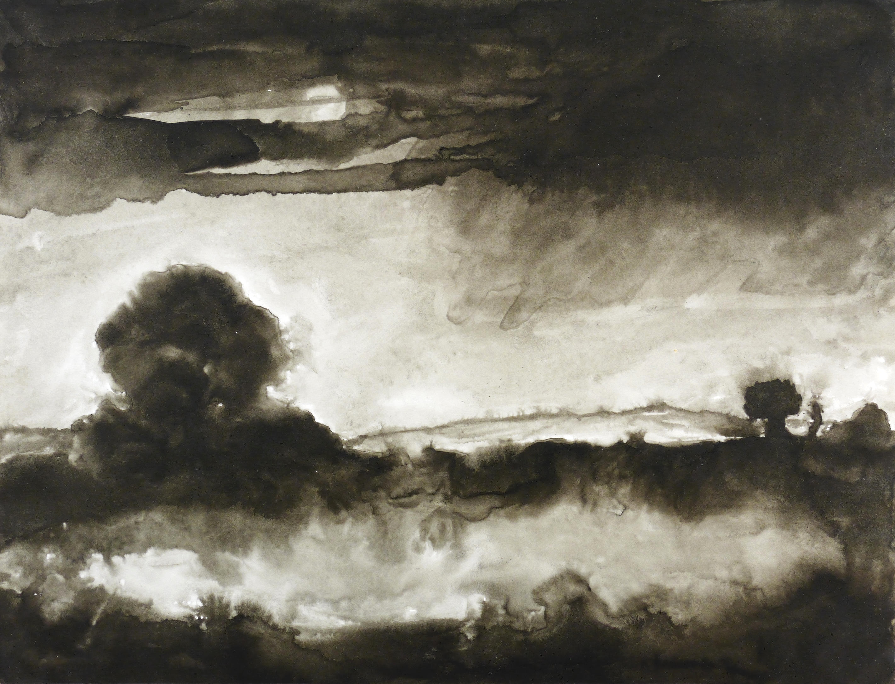 Um 1980. Zeichnung / Pinselzeichnung, in schwarzer Tusche, auf leichtem weißlichem Velin. – Originale Künstlergrafik, von Elly Schreiter. – Unikat. – 32,3 x 42,0 cm (Darstellung / Blatt).