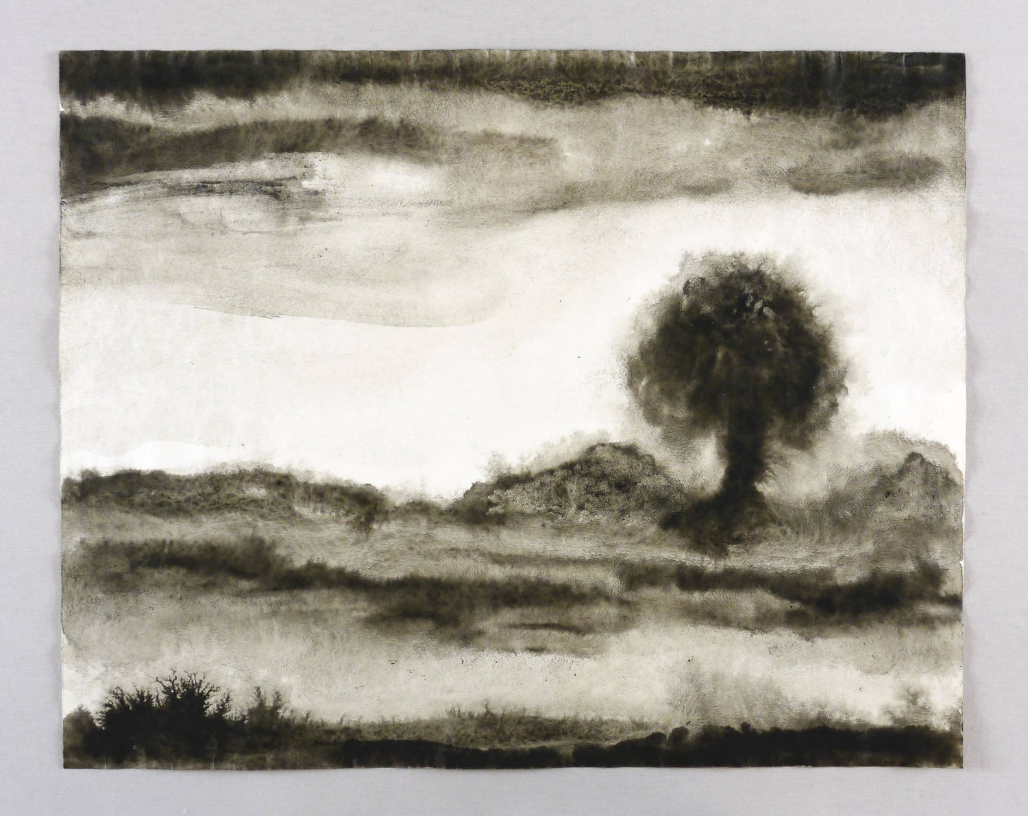 Um 1980. Zeichnung / Pinselzeichnung, in schwarzer Tusche, auf leichtem weißlichem Velin. – Originale Künstlergrafik, von Elly Schreiter. – Unikat. – 33,1 x 41,3 cm (Darstellung / Blatt).