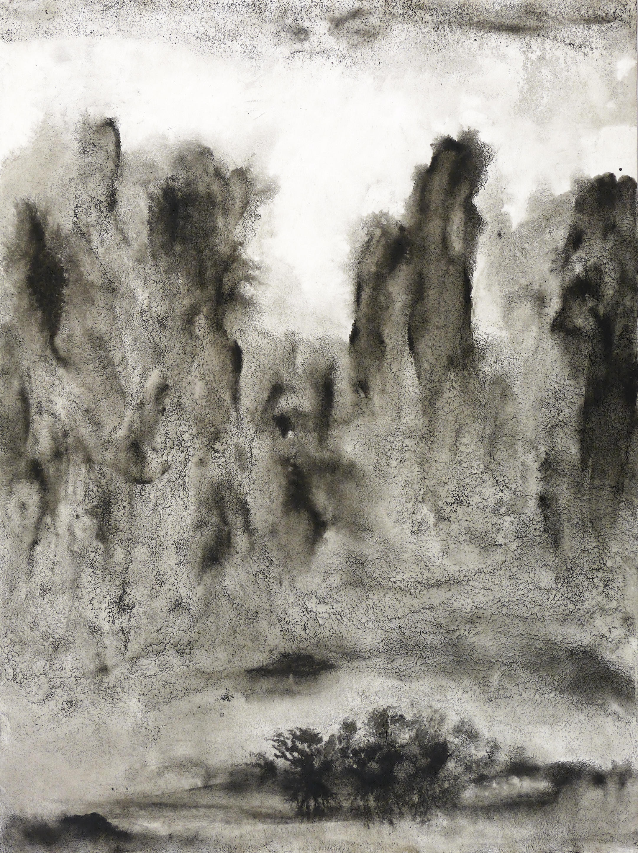 Um 1980. Zeichnung / Pinselzeichnung, in schwarzer Tusche, auf leichtem weißlichem Velin. – Originale Künstlergrafik, von Elly Schreiter. – Unikat. – 43,2 x 32,4 cm (Darstellung / Blatt).