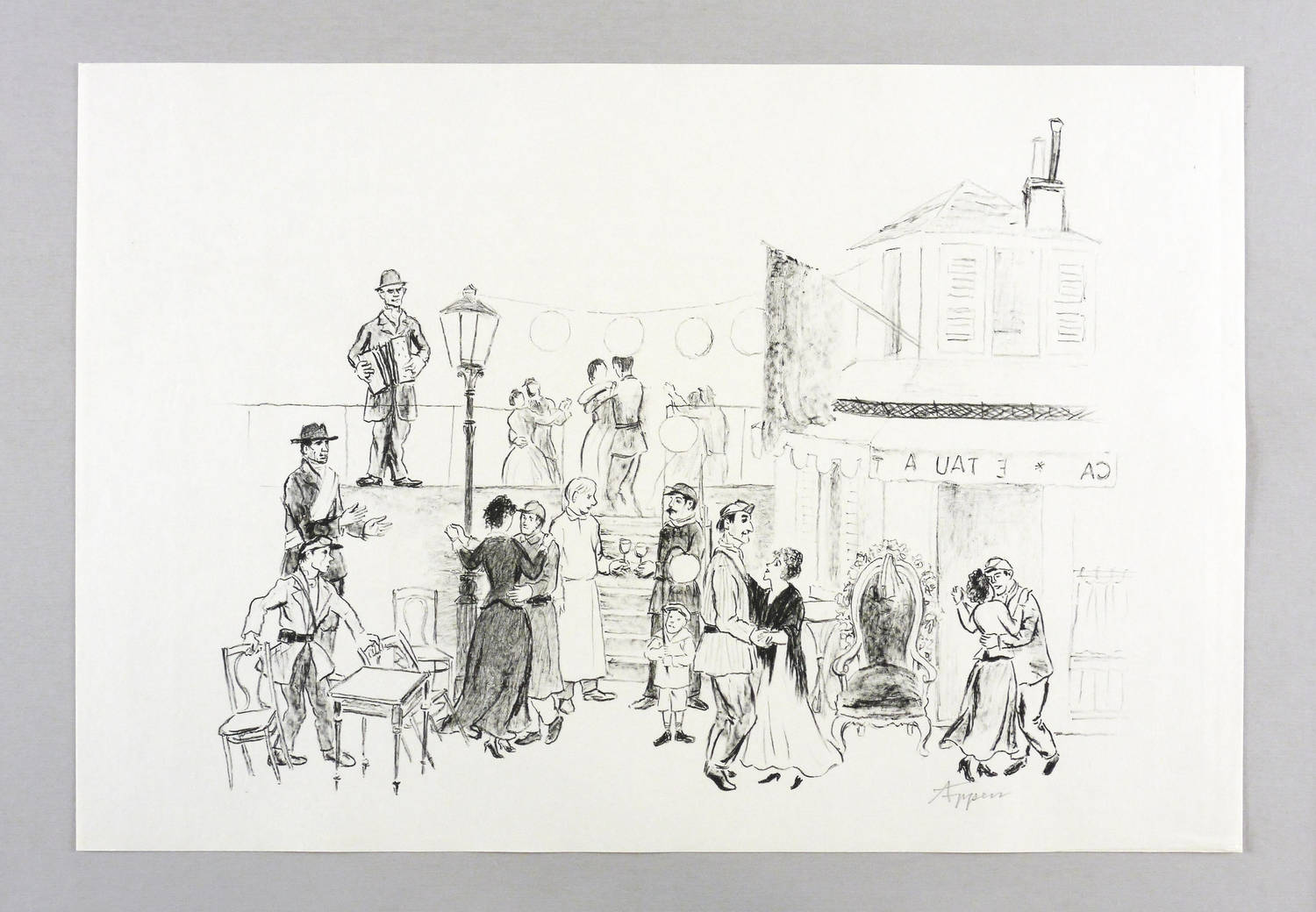 1972. Zinkografie / Kreidezinkografie, in Schwarz, auf hellem Velin. – Originale Künstlergrafik, von Karl von Appen. – Auflage Exemplar Nr. 62/100. – 28,5 x 38,2 cm (Darstellung / Druckbild), 33 x 49 cm (Blatt).