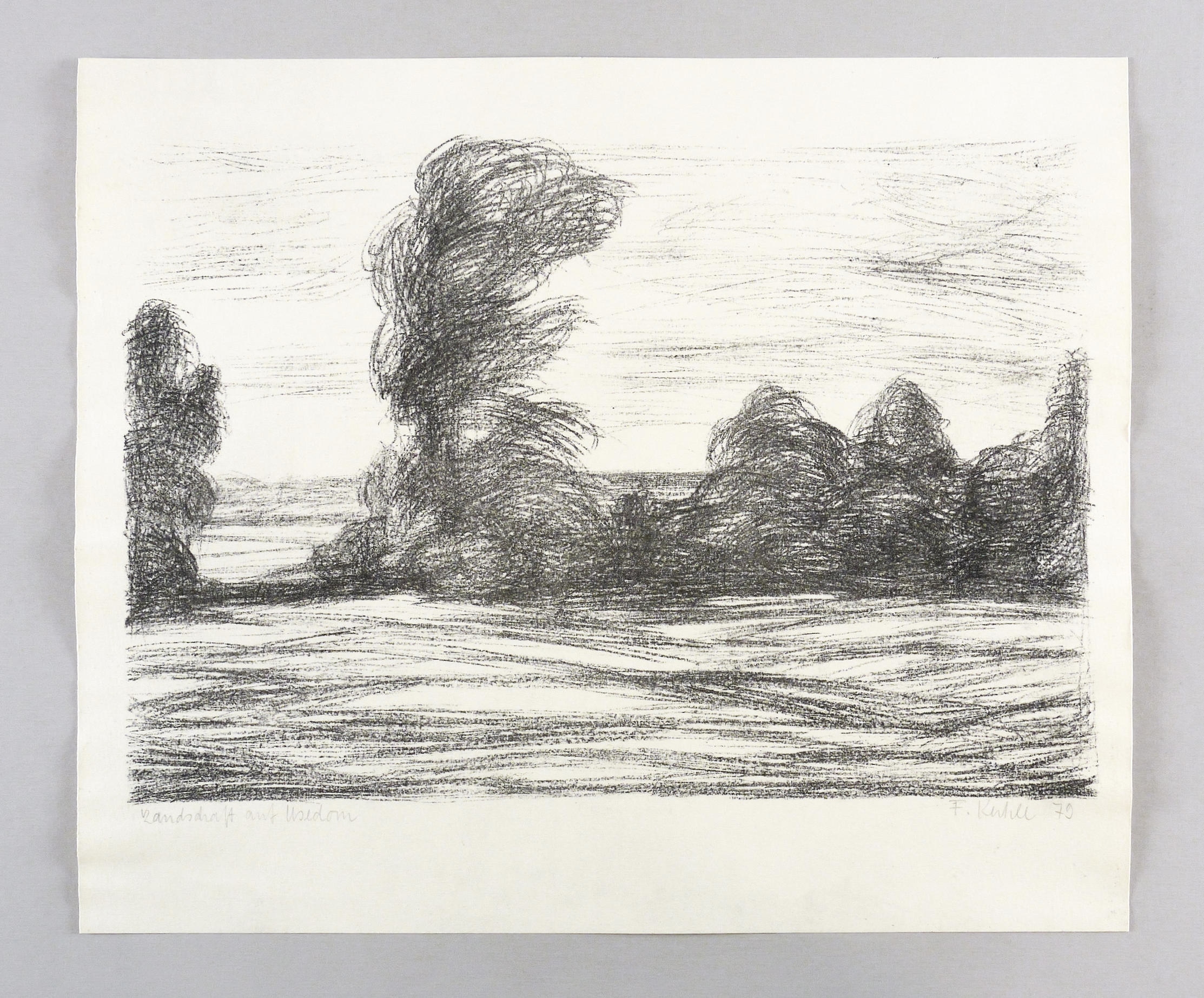 Rechts unten in Bleistift signiert und datiert: ″F. Kuhle 79″. Links Titel: ″Landschaft auf Usedom″. – Sehr gut erhalten.