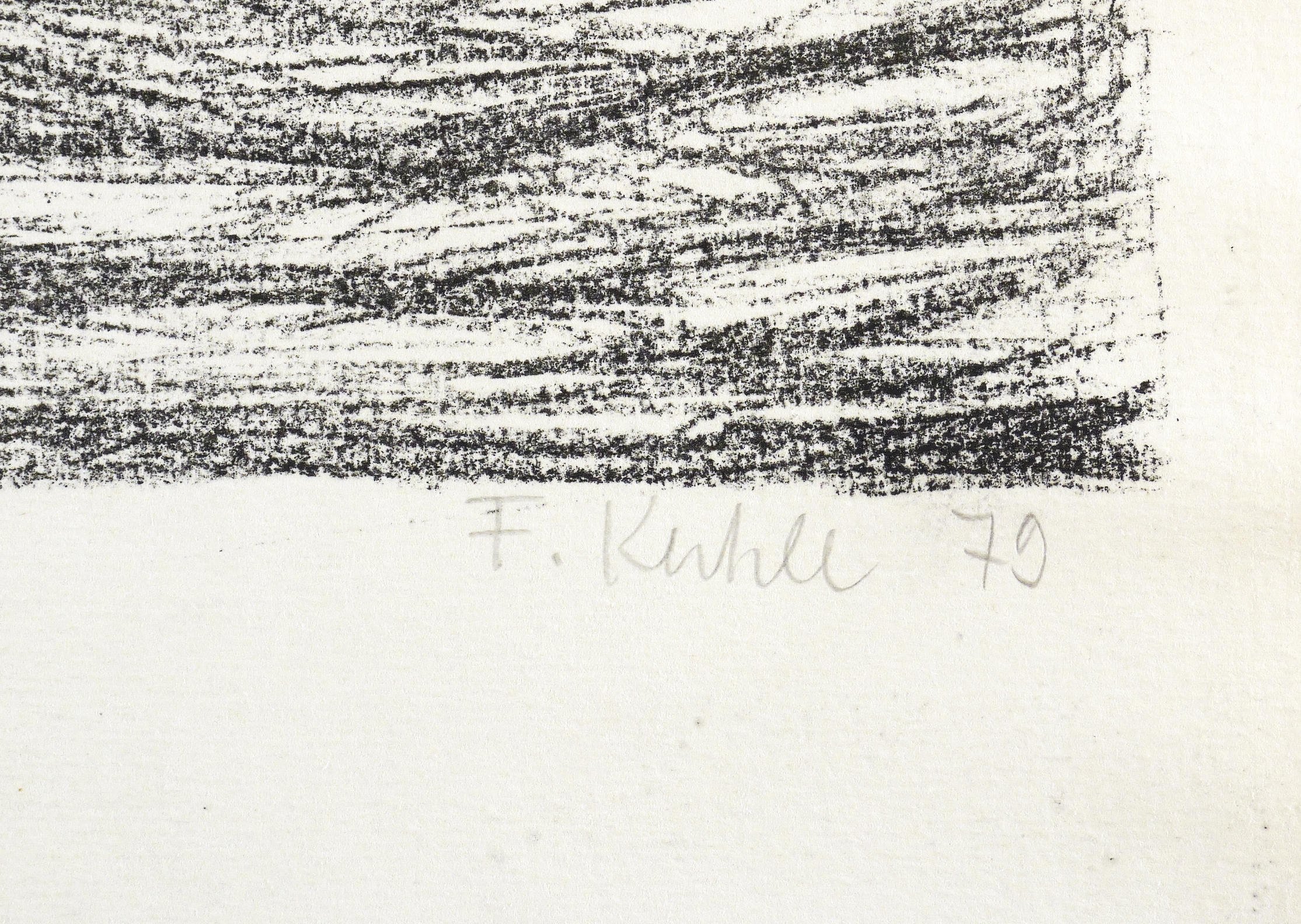 1979. Lithografie / Kreidelithografie, in Schwarz, auf hartem hellchamois Weißenborn. – Originale Künstlergrafik, von Fridrun Kuhle. – 42 x 50 cm (Blatt), 31,9 x 46,0 cm (Darstellung / Druckbild).